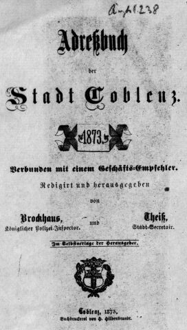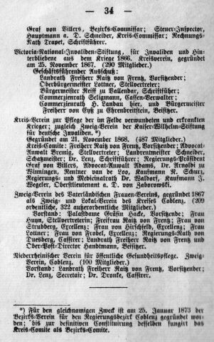 Das Koblenzer Adressbuch von 1873 als älteste bekannte Quelle für die Gründungdaten des Zweig-Vereins des Vaterländischen Frauenvereins und des Kreis-Vereins zur Pflege der im Felde verwundeten und erkrankten Krieger (Stadtarchiv Koblenz)